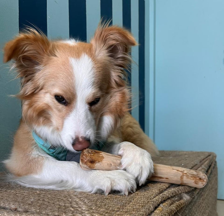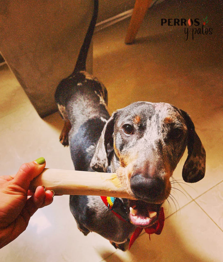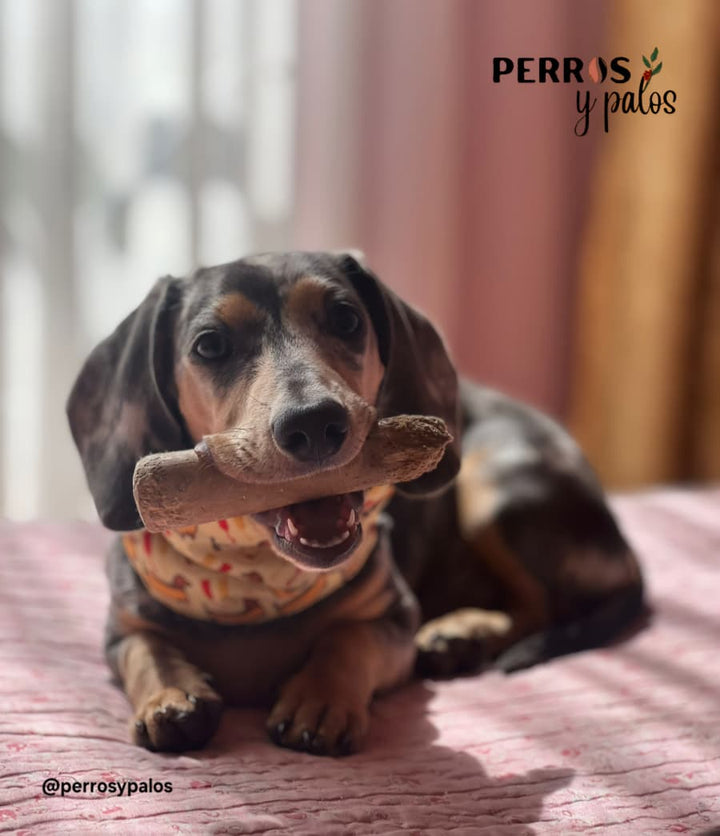El mordedor natural que tu salchi (y cualquier perrito) va a amar. Hecho al 100% en madera de café proveniente de la Sierra Nevada de Santa Marta (Colombia), sin aditivos, conservantes ni saborizantes. Es duro, no se astilla y al masticarlo se deshilacha en fibras suaves, ayudando a la higiene dental y a canalizar la energía de forma segura.